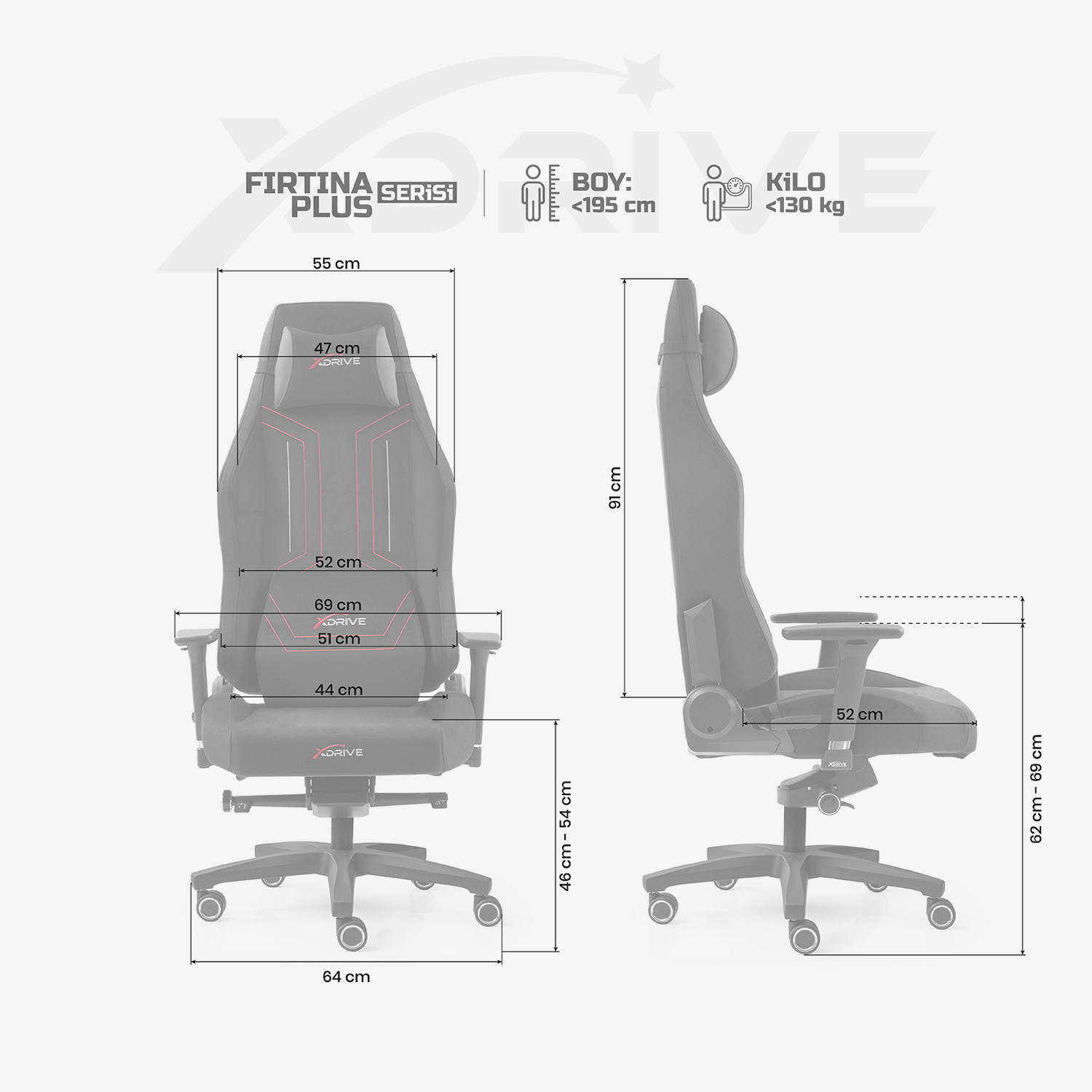 XDrive, farklı vücut tiplerine uygun ergonomik tasarımlarıyla herkes için ideal oturma konforu sunar. Size en uygun modeli seçmek için ürün sayfasında bulunan Boy-Kilo Tablosunu inceleyebilir, vücut yapınıza en uygun koltuğu kolayca belirleyebilirsiniz. Maksimum konfor ve destek için doğru ölçüler ve kaliteli malzemeler büyük önem taşır. Oyuncu koltuğu modellerimizin detaylı ölçülerini ve kullanılan malzemeleri görmek için Ürün Ölçüsü kısmına tıklayarak inceleyebilirsiniz.