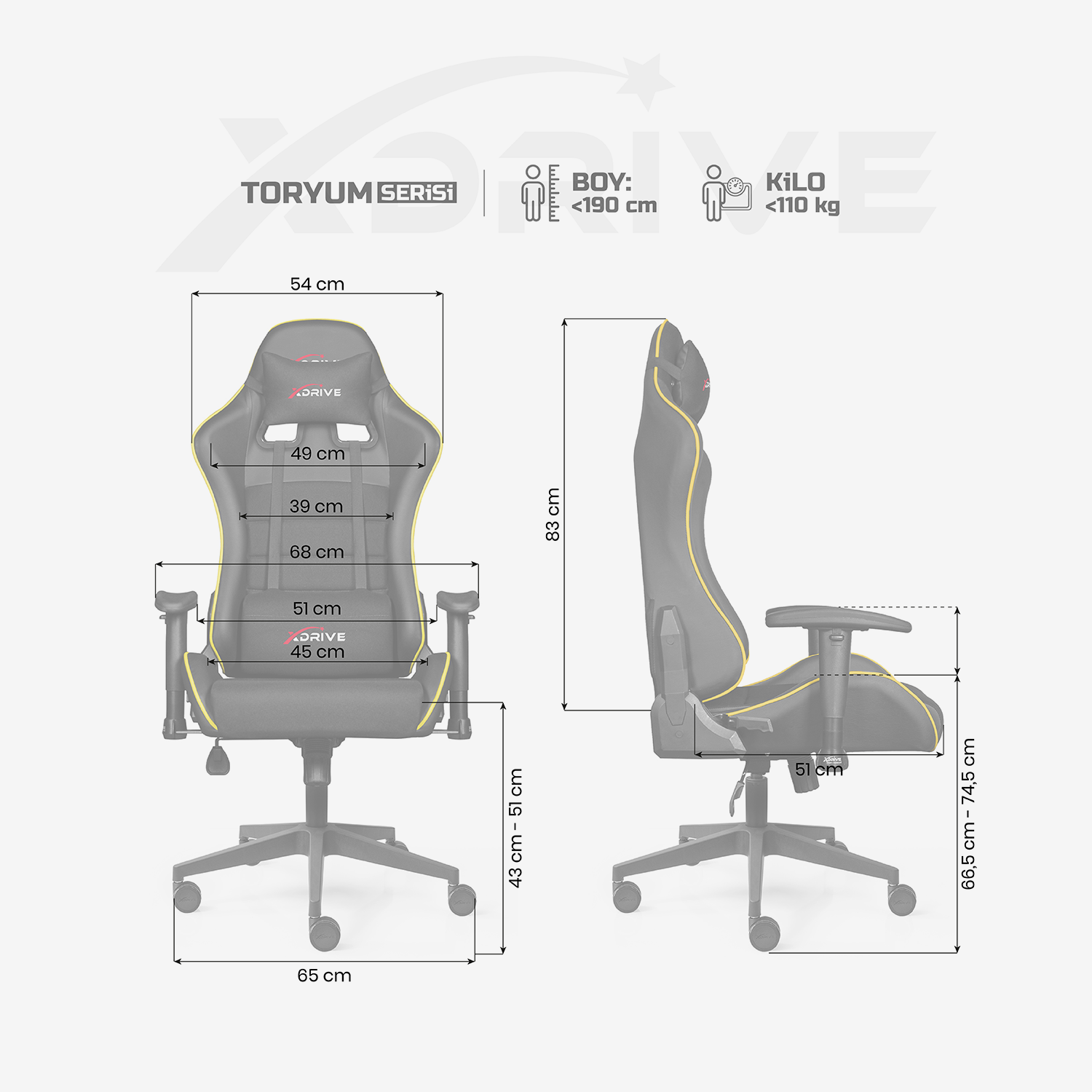 At xDrive, we offer ergonomic designs tailored to different body types—ensuring ideal seating comfort for everyone. To find the model that suits you best, simply check the Height & Weight Chart on the product page and identify the chair that fits your body type. Accurate dimensions and high-quality materials are essential for maximum comfort and support. To view the detailed measurements and materials used in our gaming chair models, click the Chair Dimensions section.